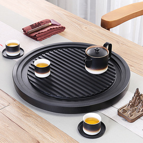 乌金石大号圆茶盘 陶瓷面板储水排水双用干泡盘 日式...