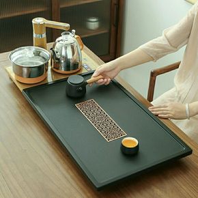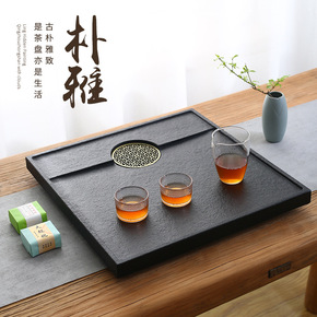 乌金石茶盘家用简约实木托盘干泡竹制茶台禅意沥水石茶...