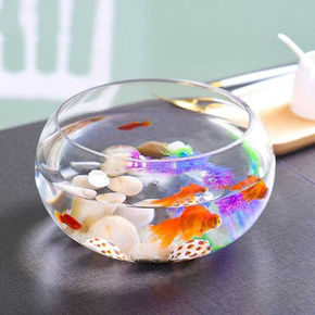 鱼缸玻璃水族办公桌面小透明圆形鱼缸乌龟缸水培玻璃瓶...