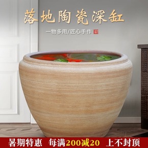 景德镇创意粗陶复古陶瓷金鱼缸乌龟缸水仙花盆家居摆件...