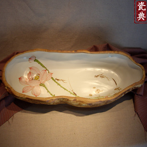 景德镇陶瓷器水浅荷花睡莲盆养鱼盆水培金鱼缸乌龟缸创...
