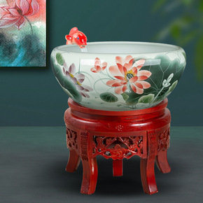 景德镇陶瓷鱼缸 桌面客厅小型金鱼盆 睡莲盆 家用...