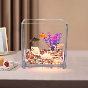 鱼缸玻璃方形办公桌绿萝水培家用小鱼创意透明小型迷你...