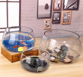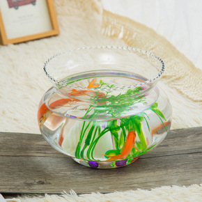 包邮鱼缸水培花器超白 花边鱼缸 透明圆形玻璃金鱼缸...