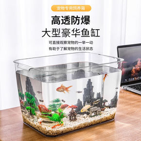 乌龟缸带晒台大型别墅家用客厅巴西龟屋玻璃专用鱼缸带...