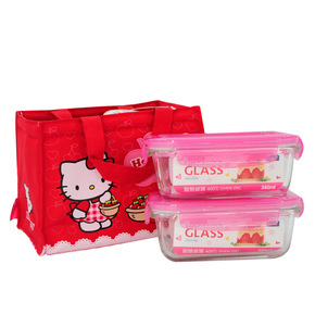 乐扣保鲜盒 KT猫耐热玻璃便当盒套装餐盒 卡通饭碗...
