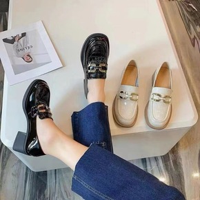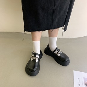 2022春季新款厚底英伦风小个子乐福鞋平底小皮鞋j...