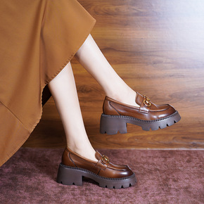 厚底乐福鞋女2022年春季新款真皮单鞋马衔扣松糕英...