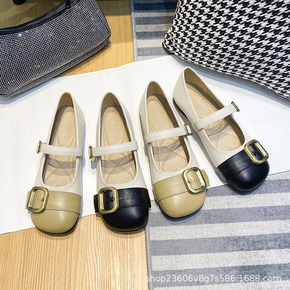 浅口单鞋女2022春夏新款单鞋韩版平跟小皮鞋百塔乐...