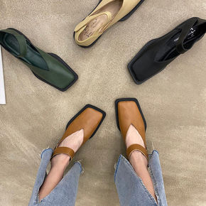 设计感小众低跟鞋法式复古方头单鞋乐福鞋2022春季...