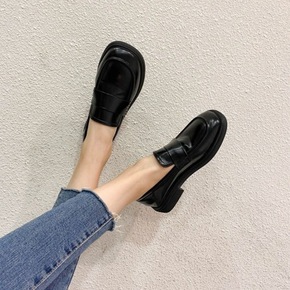 乐福鞋女2021新款英伦风小皮鞋软皮单鞋豆豆鞋厚底...