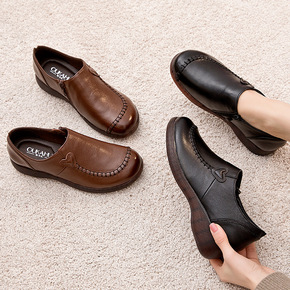 旺奈2020新款妈妈鞋真皮单鞋女软底老人鞋平跟大码...