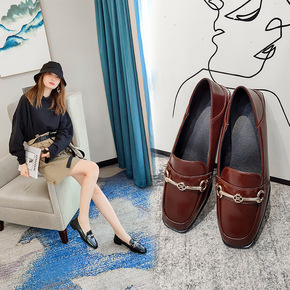 小皮鞋女英伦风女鞋2021年秋冬新款百搭粗跟中跟乐...