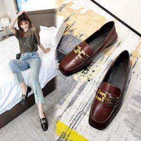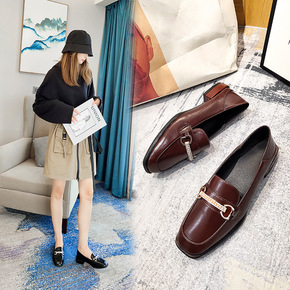 2021年秋冬新款一脚蹬女鞋英伦风小皮鞋女平底单鞋...