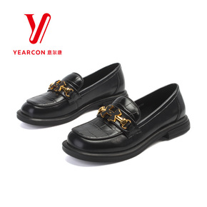 意尔康黑色小皮鞋女2021年新款jk鞋平底乐福鞋女...