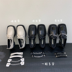 20221秋季新款 方头复古小皮鞋女低跟单鞋女皮带...