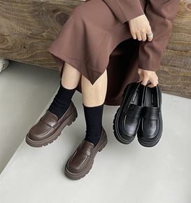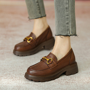 2021春季新款复古圆头真皮乐福鞋厚底休闲女鞋英伦...