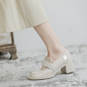 粗跟单鞋女2021年春秋新款英伦风复古小皮鞋时尚圆...
