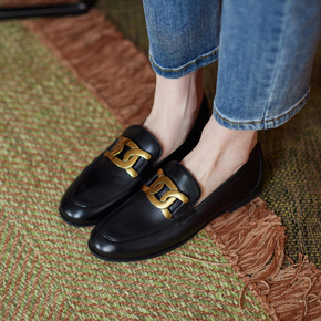 2021年秋季新款商场同款牛皮石头纹平底女单鞋英伦...