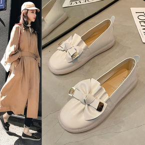 豆豆鞋女2021春季新款蝴蝶结白色护士鞋百搭乐福鞋...