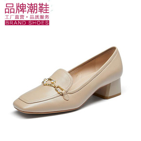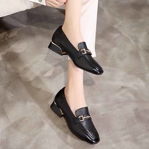 盾狐尖头粗跟单鞋女士休闲皮鞋2020秋季新款工作鞋...