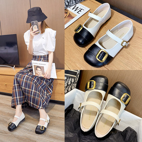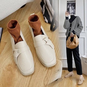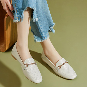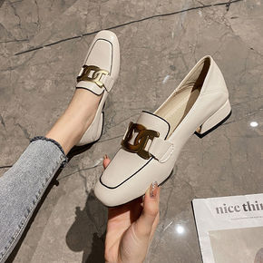 2021夏季新款方头平底复古乐福鞋女休闲浅口女鞋一...