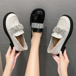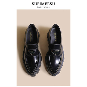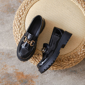 女士亮面皮革厚底尖头乐福鞋皮鞋2021新款jk休闲...