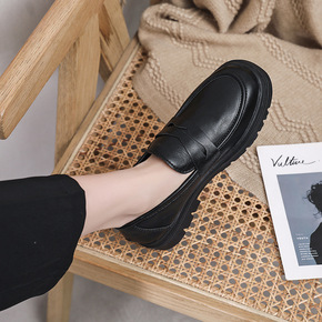 2021秋新款日系乐福鞋女学院风单鞋厚底方头复古英...