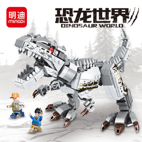 明迪10035-37恐龙世界兼容乐高颗粒拼装霸王龙...