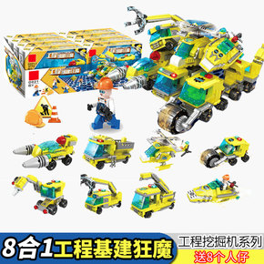 兼容樂高城市8合1工程车创意变形拼装小颗粒积木益智...