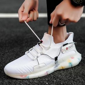 男鞋2021年新款夏季薄款透气飞织网面果冻底运动休...