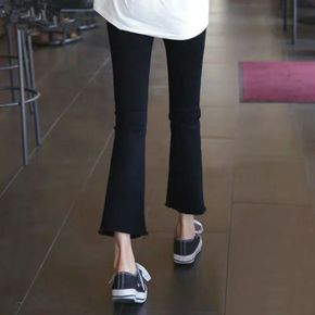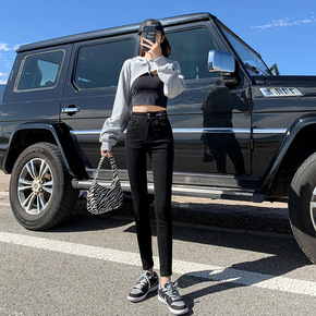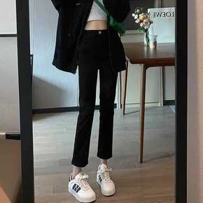紧身裤女生外穿黑色微喇叭牛仔裤女春秋装弹力修身显瘦...