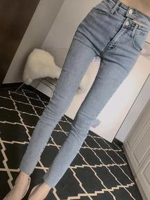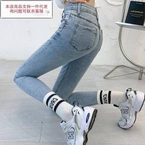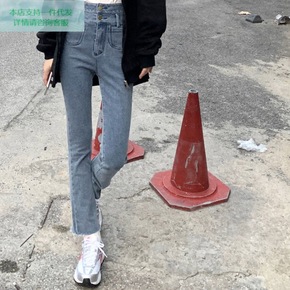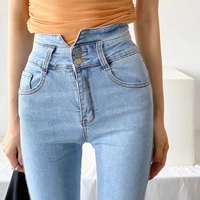 金属纽扣牛仔裤女高腰春季2022年新款修身显瘦铅笔...