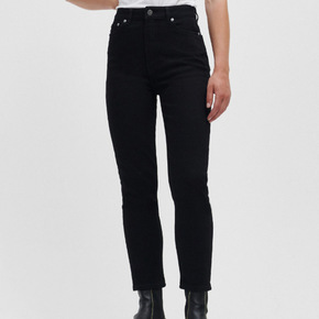 黑色直筒牛仔裤女高腰显瘦2022春夏新款小个子弹力...