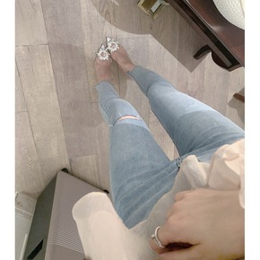 5.31 夏款小鸟腿瘦瘦裤 薄款透气jue美浅蓝修...