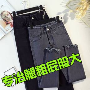 胯大腿粗弹力高腰牛仔裤女200斤大码女装春秋胖mm...