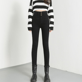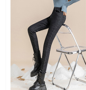 实拍2021高腰修身加绒牛仔裤女冬季新款弹力显瘦外...