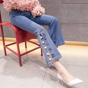 紧身裤网红设计感紧身弹力微喇叭牛仔裤女高腰百搭显瘦...