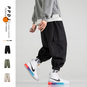 休闲裤男士夏季潮流长裤帅气束脚工装宽松运动九分裤子...