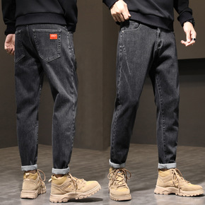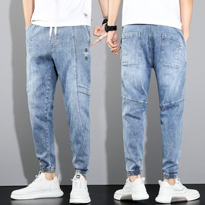潮牌牛仔裤男弹力宽松韩版潮流青年九分牛仔裤百搭时尚...