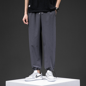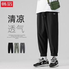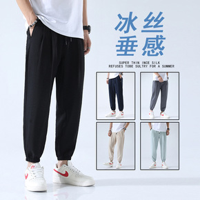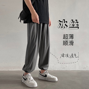 冰丝裤子男士夏季薄款宽松韩版潮流束脚运动裤潮牌时尚...