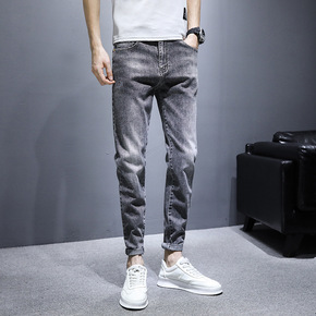 牛仔裤男士修身小脚九分裤2021年春秋新款潮流弹力...