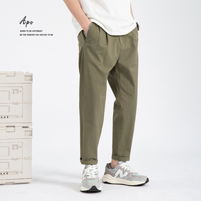 阔腿小脚裤九分裤工装裤男复古宽松直筒棉休闲帅气潮流...