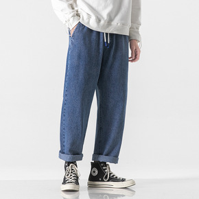 2021夏季新品潮牌韩版宽松直筒牛仔裤休闲长裤子九...