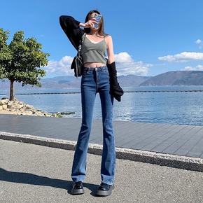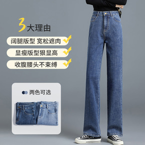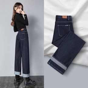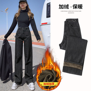 2021秋冬新款高腰加绒加厚牛仔裤女直筒显瘦垂感阔...