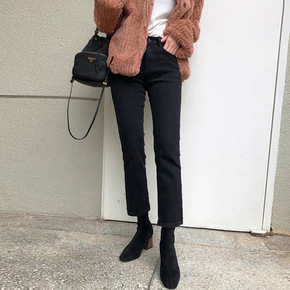 黑色牛仔裤女直筒宽松2022春季新款小个子高腰显瘦...