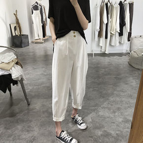2021纽扣休闲裤女士春夏新款高腰宽松显瘦韩版松紧...