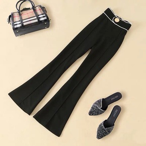 微喇叭九分裤女高腰休闲裤春夏新款垂感修身显瘦黑色打...