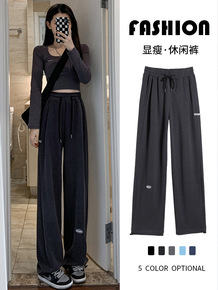 司南 休闲阔腿直筒高腰小个子西装裤女口九分春秋烟管...
