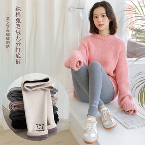 秋冬季95棉兔毛绒保暖打底裤女大码潮流英文字母蝴蝶...